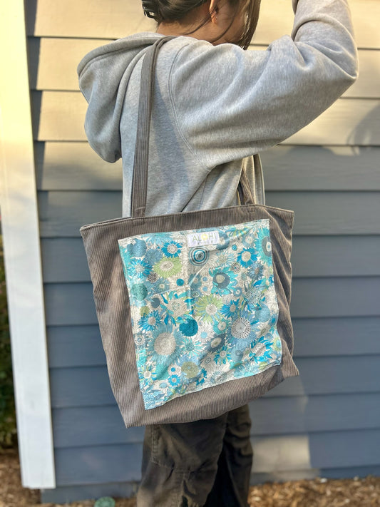 Blue Bouquet Corduroy Tote